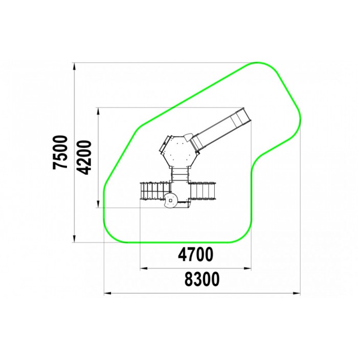 Габариты: 4700x4200x2900 мм Возрастная группа: от 6 до 12 лет Зона приземления (безопасности): 8300x7600 мм Площадь зоны приземления (безопасности): 40,3 м2 Гарантия: 1 год