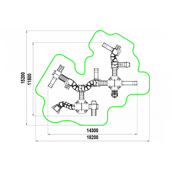 Габариты: 14300x11800x3700 мм Возрастная группа: от 6 до 12 лет Зона приземления (безопасности): 18300x15200 мм Площадь зоны приземления (безопасности): 166,7 м2 Гарантия: 1 год