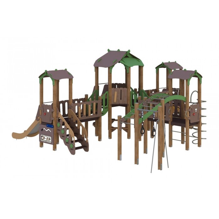 Габариты: 8700х8000х3700 мм Возрастная группа: от 6 до 12 лет Зона приземления (безопасности): 12200x11000 мм Площадь зоны приземления (безопасности): 108,30 м2 Высота полов: 1500 , 1000 мм Материалы: ручки , счеты , заглушки , клееный брус , краска , ламинированная ФСФ фанера , металл , нержавеющая сталь , оцинкованный крепеж , ФСФ фанера , цепи , канат Высота горок: 1500 , 1000 мм Страна производства: Казахстан Высота свободного падения: 1500 мм Высота свободного падения (доп): по рукоходу 2000 мм Гарантия: 1 год