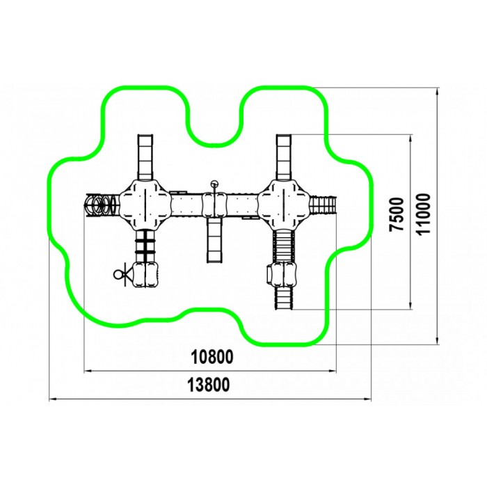 Габариты: 10600х7500х3300 мм Возрастная группа: от 6 до 12 лет Зона приземления (безопасности): 13800x11000 мм Площадь зоны приземления (безопасности): 111,50 м2 Высота полов: 1000 мм Материалы: ручки , заглушки , клееный брус , краска , ламинированная ФСФ фанера , оцинкованный крепеж , ФСФ фанера , цепи , канат Высота горок: 1000 мм Страна производства: Казахстан Высота свободного падения: 1000 мм Гарантия: 1 год