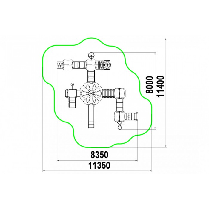 Габариты: 8350х8000х3600 мм Возрастная группа: от 6 до 12 лет Зона приземления (безопасности): 11350x11400 мм Площадь зоны приземления (безопасности): 91,70 м2 Высота полов: 1500 , 1000 мм Материалы: сетка , ручки , счеты , заглушки , клееный брус , краска , ламинированная ФСФ фанера , оцинкованный крепеж , ФСФ фанера , цепи , канат Высота горок: 1500 мм Страна производства: Казахстан Высота свободного падения: 1500 мм Гарантия: 1 год