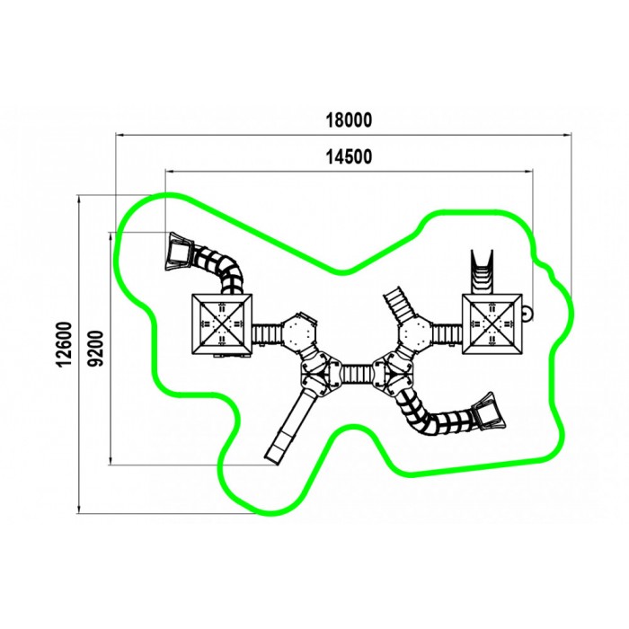 Габариты: 14500х9200х5400 мм Возрастная группа: от 6 до 12 лет Зона приземления (безопасности): 18000x12600 мм Площадь зоны приземления (безопасности): 146,50 м2 Страна производства: Казахстан Высота свободного падения: 2000 мм Гарантия: 1 год
