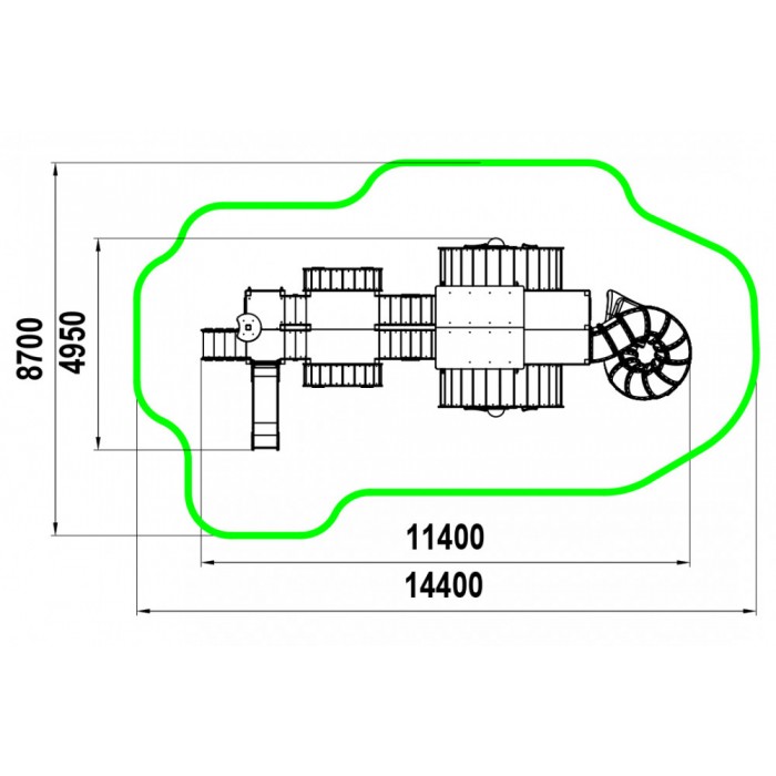 Габариты: 11400х4950х4300 мм Возрастная группа: от 6 до 12 лет Зона приземления (безопасности): 14400x8700 мм Площадь зоны приземления (безопасности): 97,00 м2 Высота полов: 1500 , 2000 , 1000 мм Ма... Читать далее...