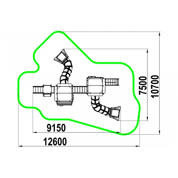 Габариты: 9150x7500x4300 мм Зона приземления (безопасности): 12600x10700 мм Площадь зоны приземления (безопасности): 85 м2 Гарантия: 1 год